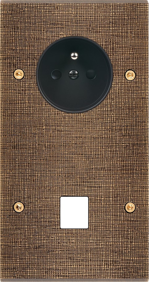 Façade Fascination en laiton massif finition Coslan double verticale prise de courant 2P+T 1 média à vis. Dimensions : 80x151x5mm, deux chanfreins biseautés. Fabriqué en France, dans les ateliers de Steaven Richard.