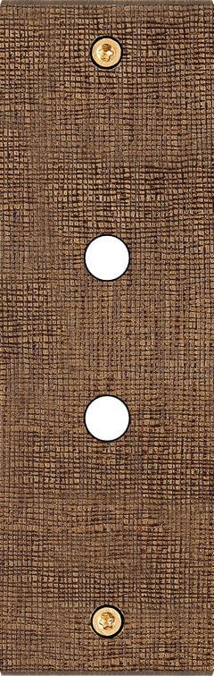 Façade Fascination en laiton massif finition Coslan étroite longue 2 boutons poussoir PUSH à vis. Dimensions : 126x80x5mm, deux chanfreins biseautés. Fabriqué en France, dans les ateliers de Steaven Richard.