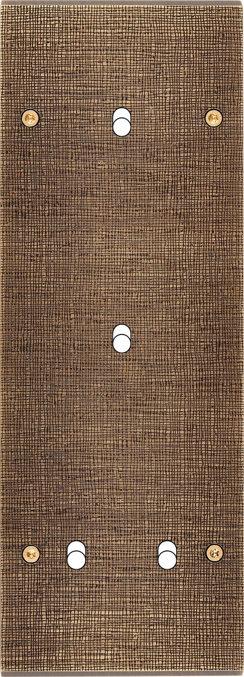 Façade Fascination en laiton massif finition Coslan triple verticale 1 basculeur 1 basculeur 2 basculeurs à vis. Dimensions : 80x222x5mm, deux chanfreins biseautés. Fabriqué en France, dans les ateliers de Steaven Richard.