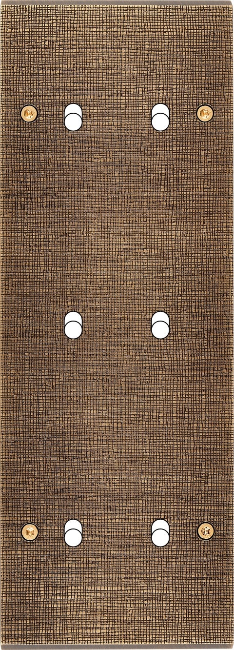 Façade Fascination en laiton massif finition Coslan triple verticale 2 basculeurs 2 basculeurs 2 basculeurs à vis. Dimensions : 80x222x5mm, deux chanfreins biseautés. Fabriqué en France, dans les ateliers de Steaven Richard.
