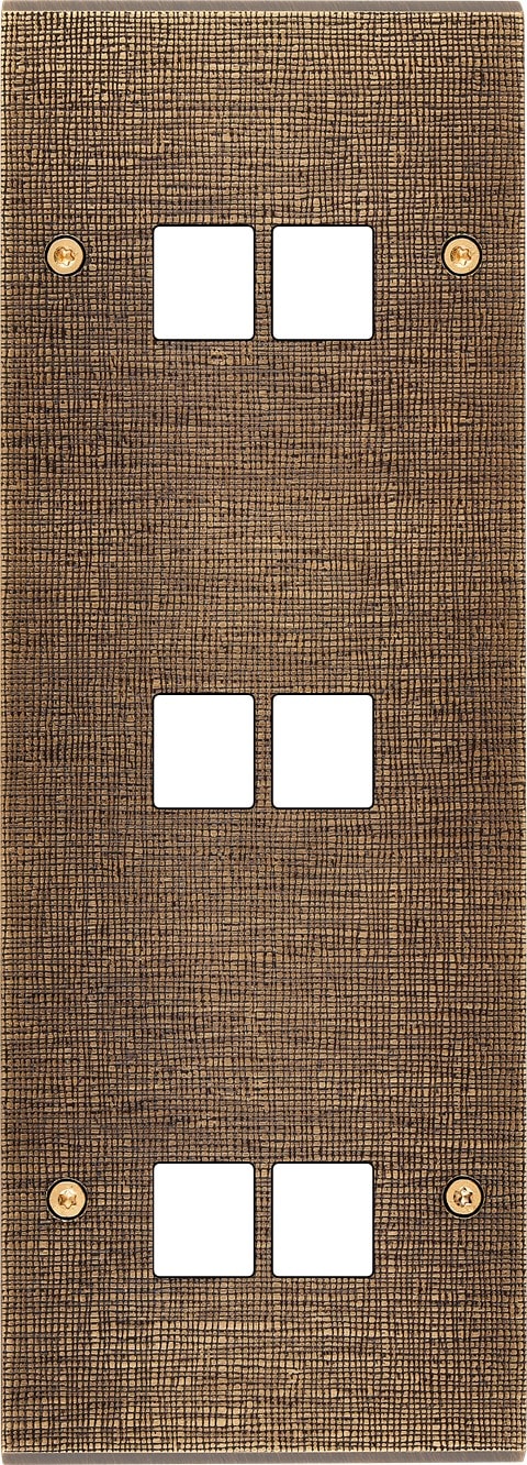 Façade Fascination en laiton massif finition Coslan triple verticale 2 média 2 média 2 média à vis. Dimensions : 80x222x5mm, deux chanfreins biseautés. Fabriqué en France, dans les ateliers de Steaven Richard.