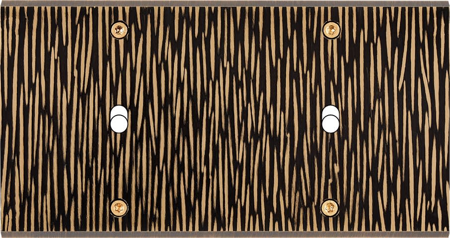 Façade Fascination en laiton massif finition Fauve double horizontale 1 basculeur 1 basculeur à vis. Dimensions : 151x80x5mm, deux chanfreins biseautés. Fabriqué en France, dans les ateliers de Steaven Richard.