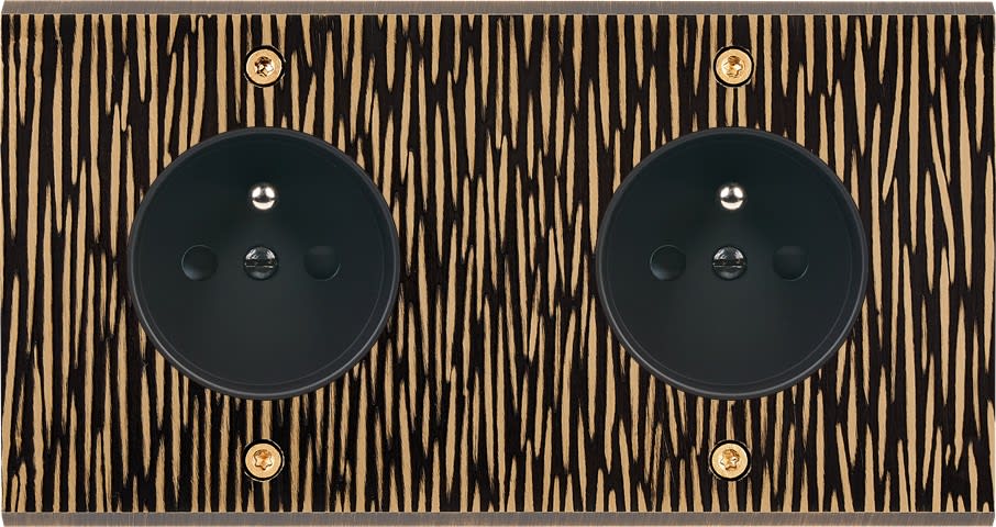 Laiton massif 5mm - Façade format double horizontale 151x80mm - 6 finitions disponibles et plus de 50 fonctions - Montage sur boîtiers standards profondeur 50mm - Façade à vis - Compatible avec les mécanismes MODELEC standards à connexion automatique