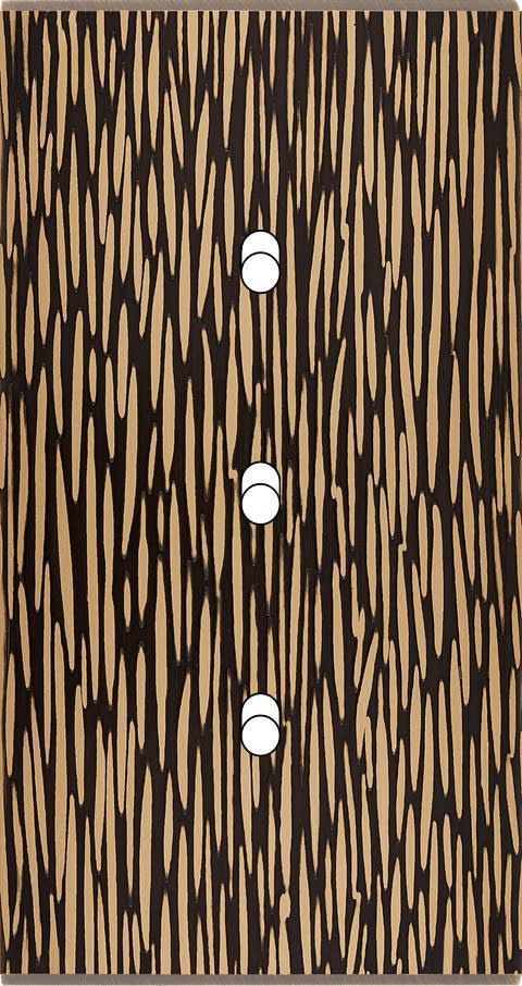 Façade Fascination en laiton massif finition Fauve double verticale 3 basculeurs magnétique. Dimensions : 80x151x5mm, deux chanfreins biseautés. Fabriqué en France, dans les ateliers de Steaven Richard.