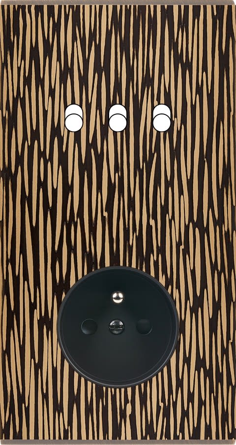 Façade Fascination en laiton massif finition Fauve double verticale 3 basculeurs prise 2P+T magnétique. Dimensions : 151x80x5mm, deux chanfreins biseautés. Fabriqué en France, dans les ateliers de Steaven Richard.