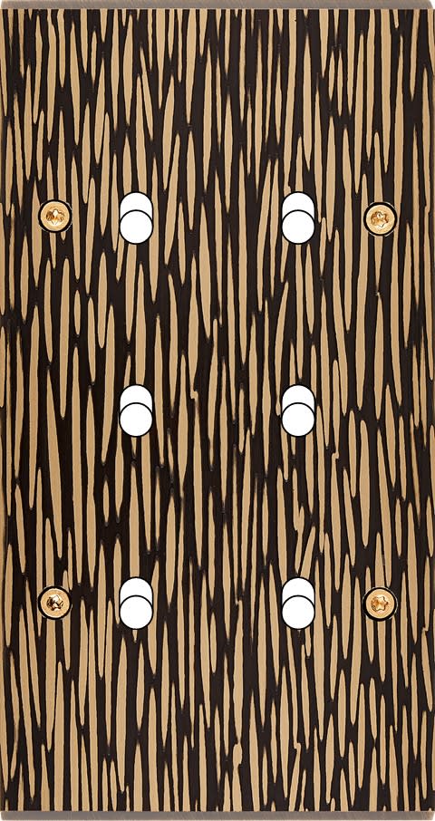 Façade Fascination en laiton massif finition Fauve double verticale 6 basculeurs à vis. Dimensions : 80x151x5mm, deux chanfreins biseautés. Fabriqué en France, dans les ateliers de Steaven Richard.