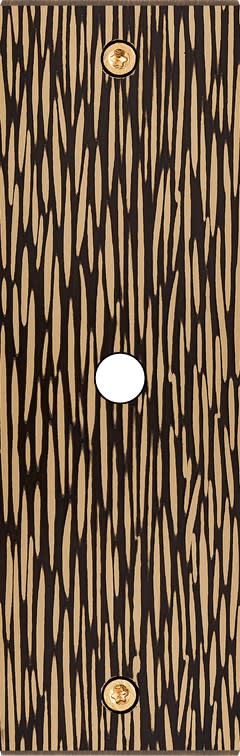 Façade Fascination en laiton massif finition Fauve étroite longue 1 bouton poussoir PUSH à vis. Dimensions : 126x80x5mm, deux chanfreins biseautés. Fabriqué en France, dans les ateliers de Steaven Richard.