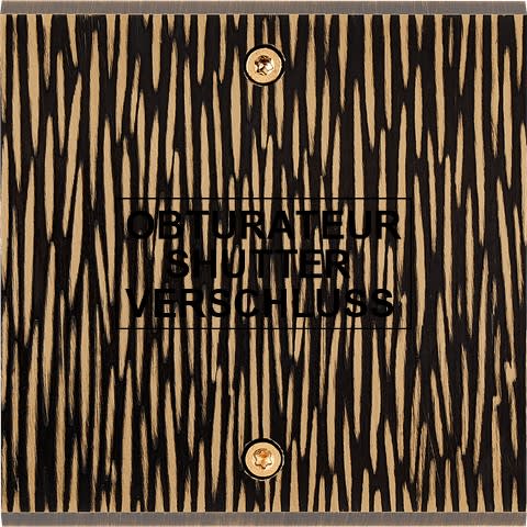 Façade Fascination en laiton massif finition Fauve simple Obturateur à vis. Dimensions : 80x80x5mm, deux chanfreins biseautés. Fabriqué en France, dans les ateliers de Steaven Richard.
