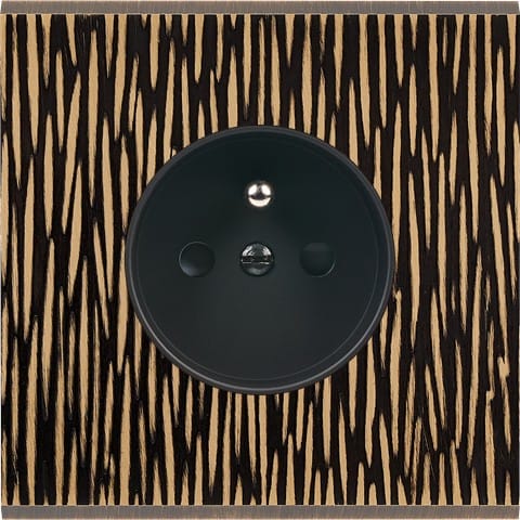 Façade Fascination en laiton massif finition Fauve simple prise 2P+T magnétique. Dimensions : 80x80x5mm, deux chanfreins biseautés. Fabriqué en France, dans les ateliers de Steaven Richard.
