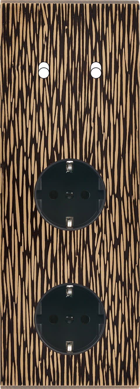 Façade Fascination en laiton massif finition Fauve triple verticale 2 Basculeurs 1 prise Schuko 1 prise Schuko. Dimensions : 80x222x5mm, deux chanfreins biseautés. Fabriqué en France, dans les ateliers de Steaven Richard.