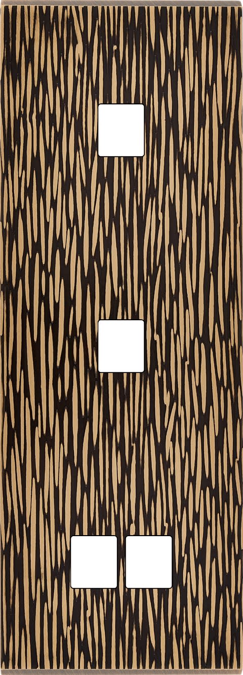 Façade Fascination en laiton massif finition Fauve triple verticale 1 Media 1 Media 2 Media magnétique. Dimensions : 80x222x5mm, deux chanfreins biseautés. Fabriqué en France dans les ateliers de Steaven Richard.