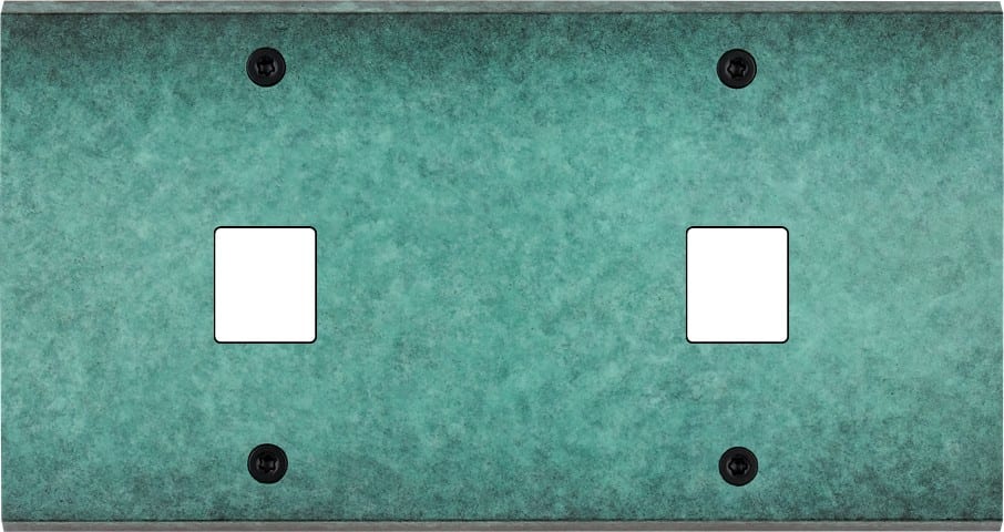 Façade Fascination en laiton massif finition Jade double horizontale 1 média 1 média à vis. Dimensions : 151x80x5mm, deux chanfreins biseautés. Fabriqué en France, dans les ateliers de Steaven Richard.