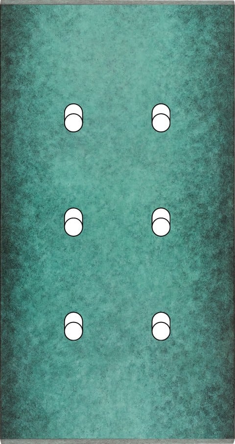 Façade Fascination en laiton massif finition Jade double verticale 6 basculeurs magnétique. Dimensions : 80x151x5mm, deux chanfreins biseautés. Fabriqué en France, dans les ateliers de Steaven Richard.