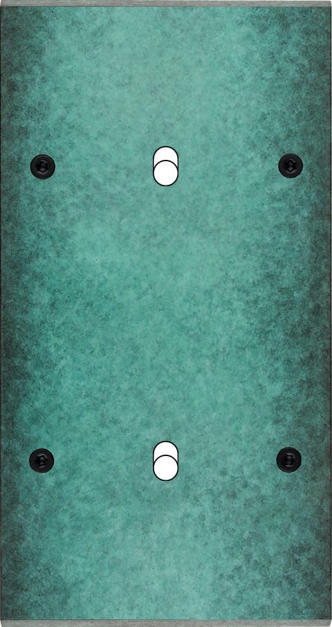 Façade Fascination en laiton massif finition Jade double verticale 1 basculeur 1 basculeur à vis. Dimensions : 80x151x5mm, deux chanfreins biseautés. Fabriqué en France, dans les ateliers de Steaven Richard.