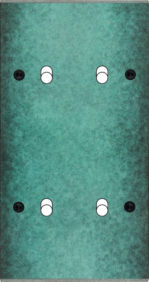 Façade Fascination en laiton massif finition Jade double verticale 2 basculeurs 2 basculeurs à vis. Dimensions : 80x151x5mm, deux chanfreins biseautés. Fabriqué en France, dans les ateliers de Steaven Richard.