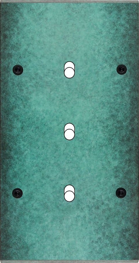Façade Fascination en laiton massif finition Jade double verticale 3 basculeurs à vis. Dimensions : 80x151x5mm, deux chanfreins biseautés. Fabriqué en France, dans les ateliers de Steaven Richard.