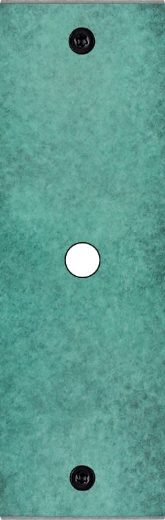 Façade Fascination en laiton massif finition Jade étroite longue 1 bouton poussoir PUSH à vis. Dimensions : 126x80x5mm, deux chanfreins biseautés. Fabriqué en France, dans les ateliers de Steaven Richard.