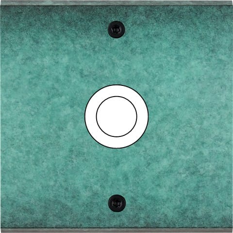 Façade Fascination en laiton massif finition Jade simple 1 gros bouton poussoir PUSH à vis. Dimensions : 80x80x5mm, deux chanfreins biseautés. Fabriqué en France, dans les ateliers de Steaven Richard.