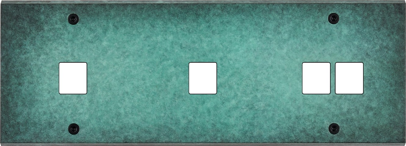 Façade Fascination en laiton massif finition Jade triple horizontale 1 média 1 média 2 média à vis. Dimensions : 222x80x5mm, deux chanfreins biseautés. Fabriqué en France, dans les ateliers de Steaven Richard.