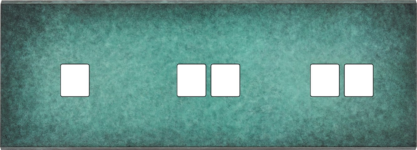 Façade Fascination en laiton massif finition Jade triple horizontale 1 Media 2 Media 2 Media magnétique. Dimensions : 222x80x5mm, deux chanfreins biseautés. Fabriqué en France, dans les ateliers de Steaven Richard.