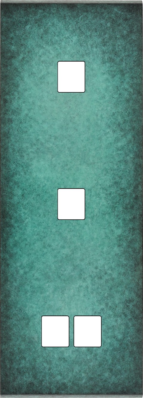 Façade Fascination en laiton massif finition Jade triple verticale 1 Media 1 Media 2 Media magnétique. Dimensions : 80x222x5mm, deux chanfreins biseautés. Fabriqué en France dans les ateliers de Steaven Richard.