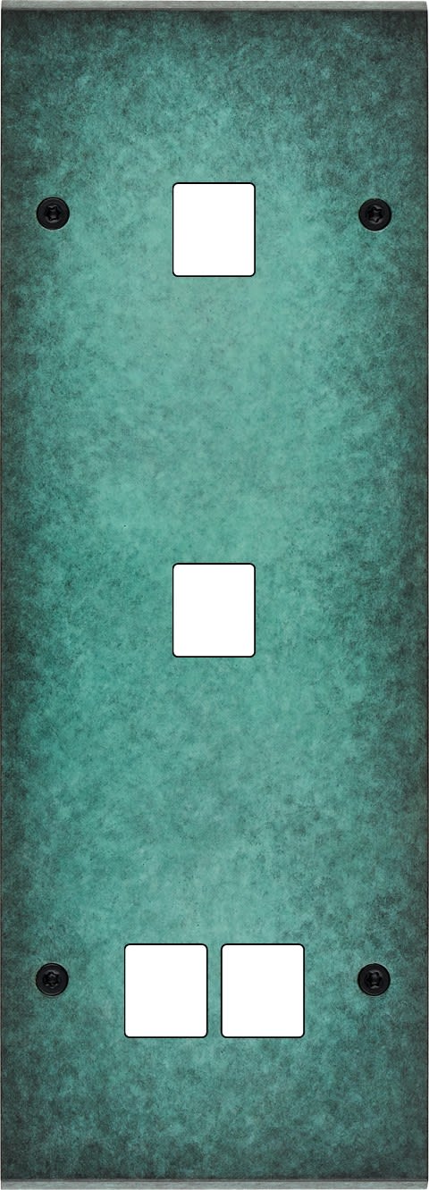 Façade Fascination en laiton massif finition Jade triple verticale 1 média 1 média 2 média à vis. Dimensions : 80x222x5mm, deux chanfreins biseautés. Fabriqué en France, dans les ateliers de Steaven Richard.