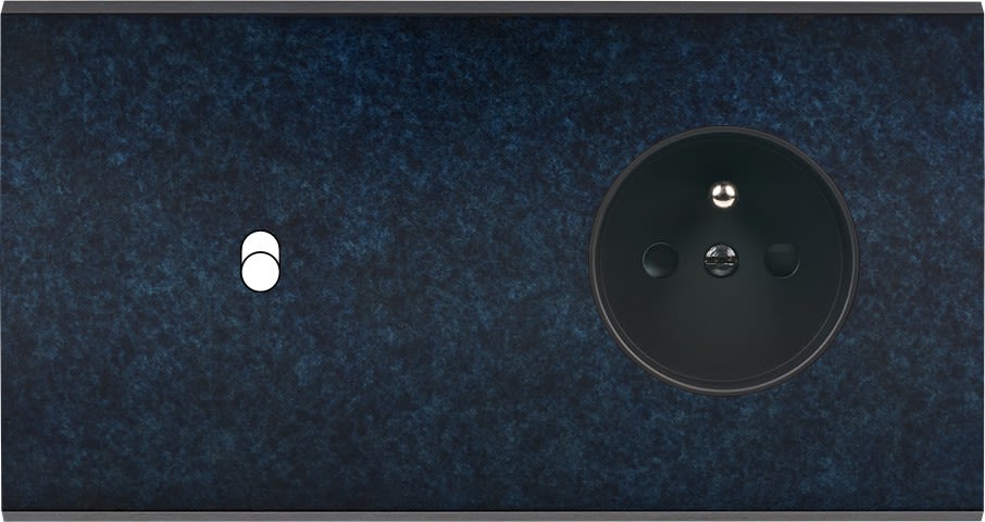 Façade Fascination en laiton massif finition Ombre double horizontale 1 basculeur prise 2P+T magnétique. Dimensions : 151x80x5mm, deux chanfreins biseautés. Fabriqué en France, dans les ateliers de Steaven Richard.
