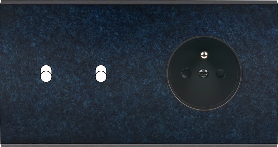 Façade Fascination en laiton massif finition Ombre double horizontale 2 basculeurs prise 2P+T magnétique. Dimensions : 151x80x5mm, deux chanfreins biseautés. Fabriqué en France, dans les ateliers de Steaven Richard.