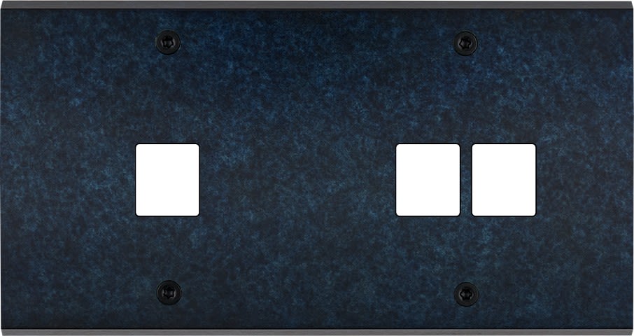 Façade Fascination en laiton massif finition Ombre double horizontale 1 média 2 média à vis. Dimensions : 151x80x5mm, deux chanfreins biseautés. Fabriqué en France, dans les ateliers de Steaven Richard.