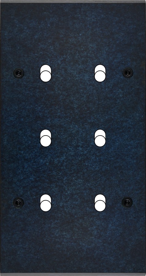 Façade Fascination en laiton massif finition Ombre double verticale 6 basculeurs à vis. Dimensions : 80x151x5mm, deux chanfreins biseautés. Fabriqué en France, dans les ateliers de Steaven Richard.