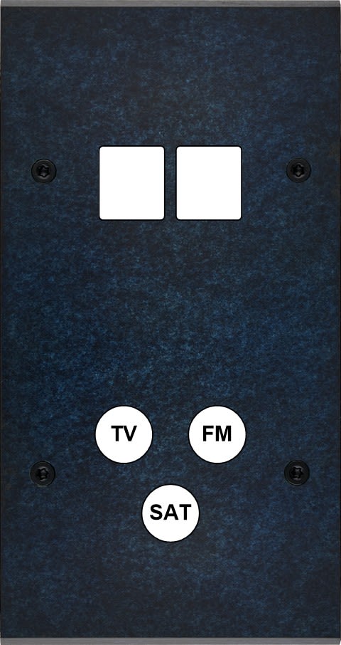 Façade Fascination en laiton massif finition Ombre double verticale 2 média 1 TV-FM-SAT à vis. Dimensions : 80x151x5mm, deux chanfreins biseautés. Fabriqué en France, dans les ateliers de Steaven Richard.