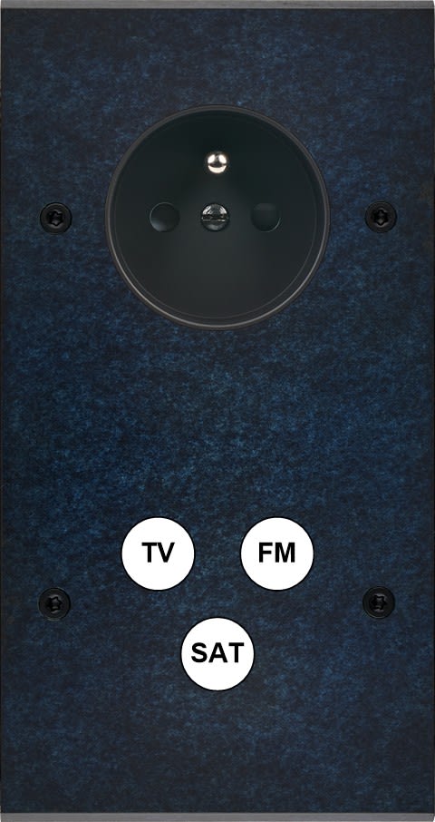 Façade Fascination en laiton massif finition Ombre double verticale prise de courant 2P+T 1 TV-FM-SAT à vis. Dimensions : 80x151x5mm, deux chanfreins biseautés. Fabriqué en France, dans les ateliers de Steaven Richard.