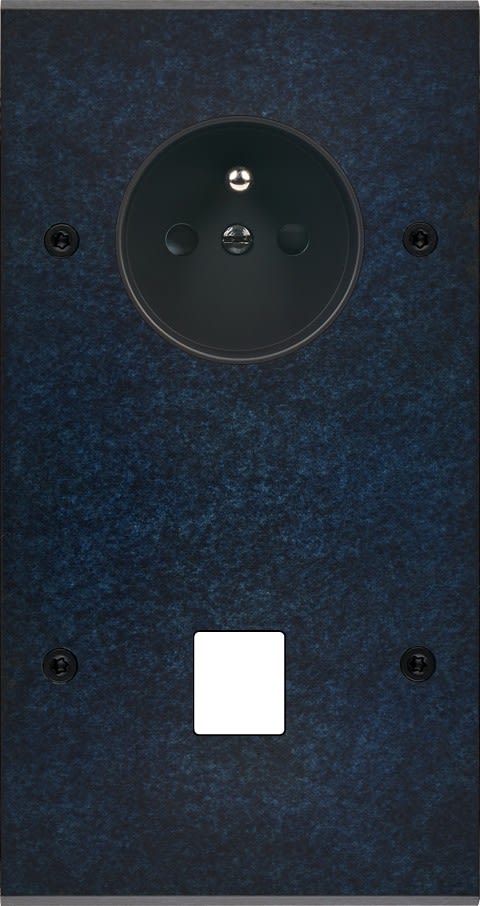 Façade Fascination en laiton massif finition Ombre double verticale prise de courant 2P+T 1 média à vis. Dimensions : 80x151x5mm, deux chanfreins biseautés. Fabriqué en France, dans les ateliers de Steaven Richard.