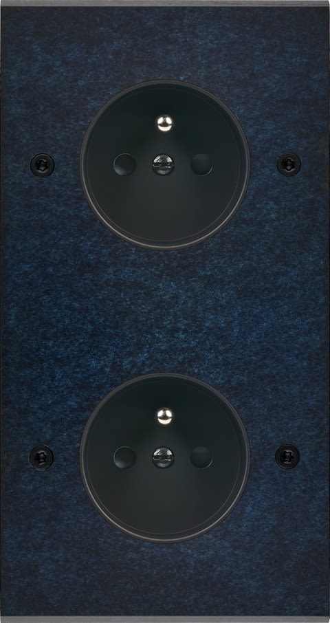 Façade Fascination en laiton massif finition Ombre double verticale prise de courant 2P+T prise de courant 2P+T à vis. Dimensions : 151x80x5mm, deux chanfreins biseautés. Fabriqué en France, dans les ateliers de Steaven Richard.