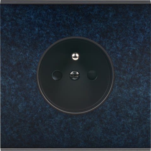 Façade Fascination en laiton massif finition Ombre simple prise 2P+T magnétique. Dimensions : 80x80x5mm, deux chanfreins biseautés. Fabriqué en France, dans les ateliers de Steaven Richard.