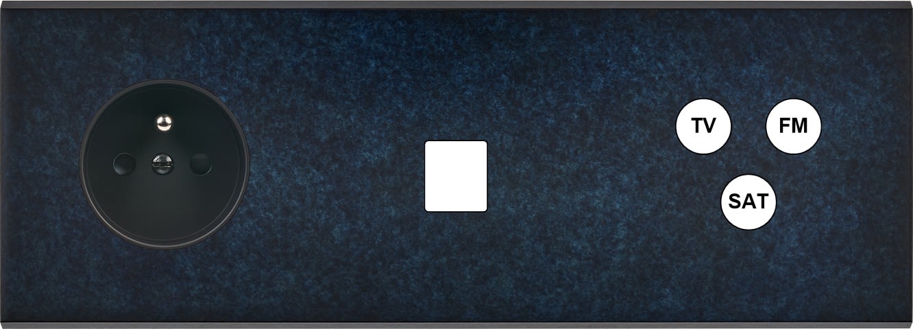 Façade Fascination en laiton massif finition Ombre triple horizontale prise 2P+T 1 Media TV-FM-SAT magnétique. Dimensions : 222x80x5mm, deux chanfreins biseautés. Fabriqué en France, dans les ateliers de Steaven Richard.