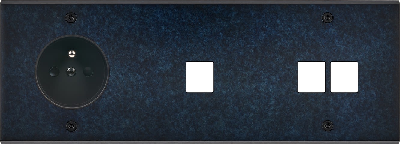 Façade Fascination en laiton massif finition Ombre triple horizontale prise de courant 2P+T 1 média 2 média à vis. Dimensions : 222x80x5mm, deux chanfreins biseautés. Fabriqué en France, dans les ateliers de Steaven Richard.