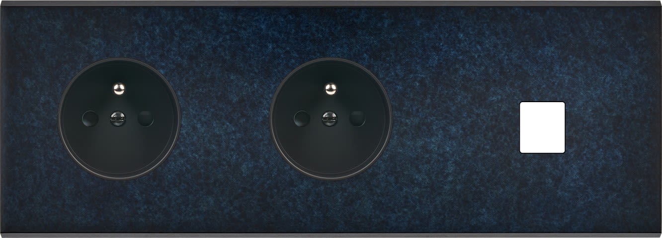 Façade Fascination en laiton massif finition Ombre triple horizontale prise 2P+T prise 2P+T 1 MEDIA magnétique. Dimensions : 222x80x5mm, deux chanfreins biseautés. Fabriqué en France, dans les ateliers de Steaven Richard.