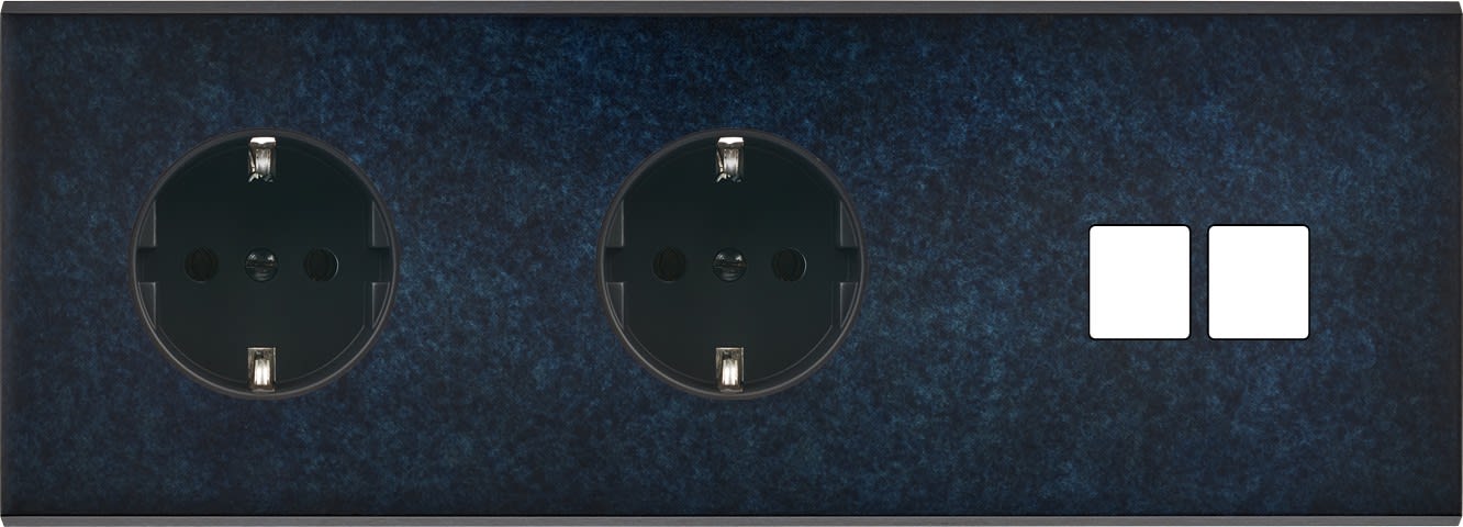 Façade Fascination en laiton massif finition Ombre triple horizontale 1 prise Schuko 1 prise Schuko 2 Media . Dimensions : 222x80x5mm, deux chanfreins biseautés. Fabriqué en France, dans les ateliers de Steaven Richard.