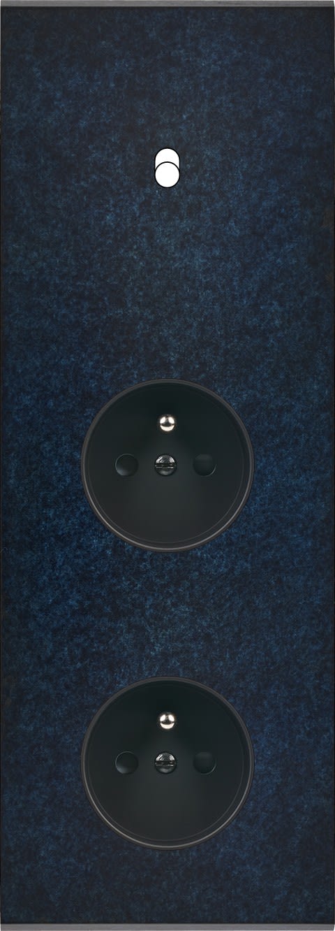 Façade Fascination en laiton massif finition Ombre triple verticale 1 basculeur prise 2P+T prise 2P+T magnétique. Dimensions : 80x222x5mm, deux chanfreins biseautés. Fabriqué en France, dans les ateliers de Steaven Richard.