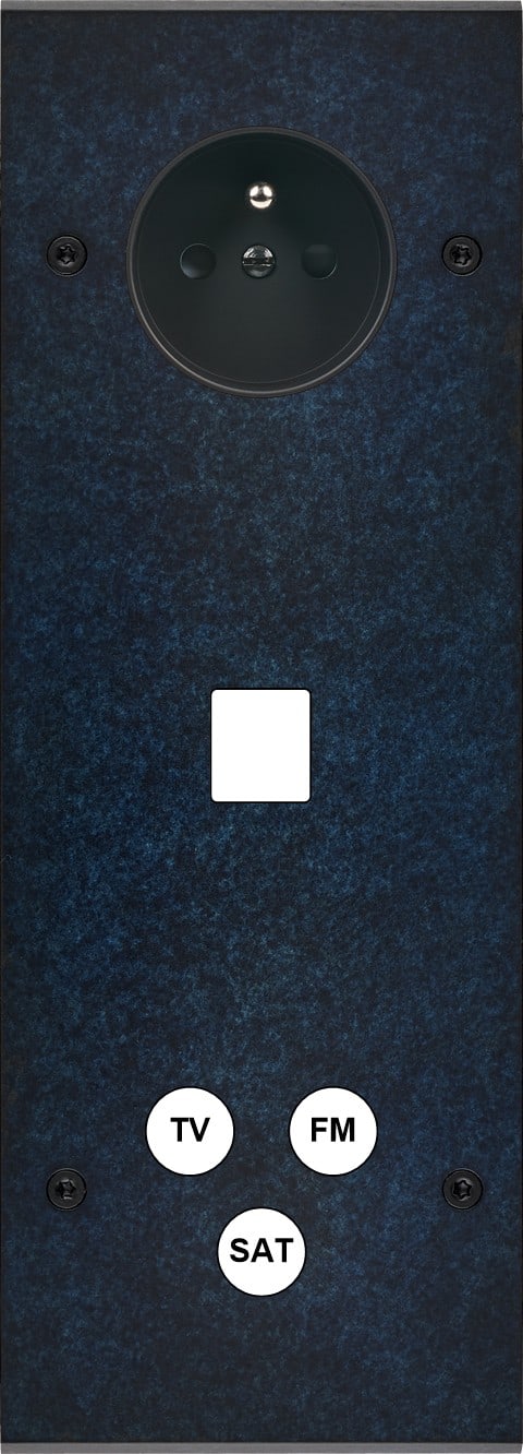 Façade Fascination en laiton massif finition Ombre triple verticale prise de courant 2P+T 1 média 1 TV-FM-SAT à vis. Dimensions : 80x222x5mm, deux chanfreins biseautés. Fabriqué en France, dans les ateliers de Steaven Richard.
