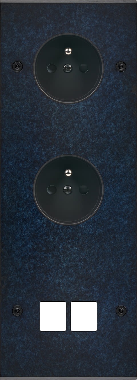 Façade Fascination en laiton massif finition Ombre triple verticale prise de courant 2P+T prise de courant 2P+T 2 média à vis. Dimensions : 80x222x5mm, deux chanfreins biseautés. Fabriqué en France, dans les ateliers de Steaven Richard.