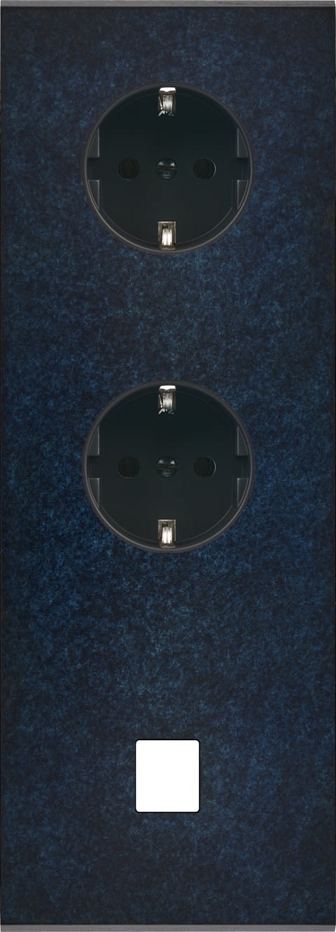Façade Fascination en laiton massif finition Ombre triple verticale 1 prise Schuko 1 prise Schuko 1 Media . Dimensions : 80x222x5mm, deux chanfreins biseautés. Fabriqué en France dans les ateliers de Steaven Richard.