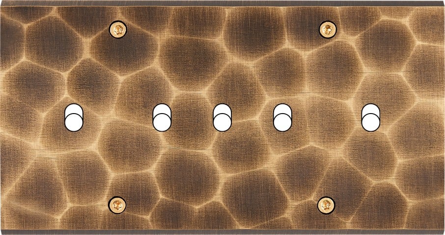 Façade Confidence en laiton massif finition Blanc Email double horizontale 5 basculeurs à vis. Dimensions : 151x80x5mm, deux chanfreins biseautés. A associer à nos leviers en laiton massif. Fabriqué en France.