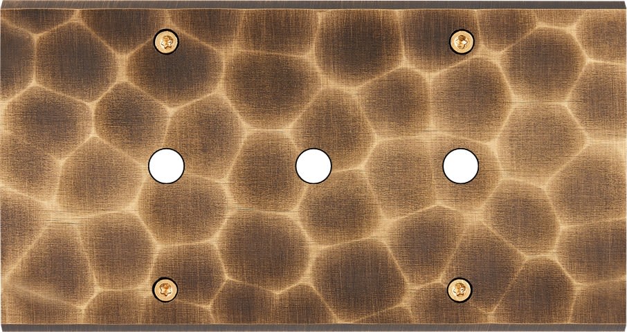 Façade Fascination en laiton massif finition Onde double horizontale 3 boutons poussoir PUSH à vis. Dimensions : 151x80x5mm, deux chanfreins biseautés. Fabriqué en France, dans les ateliers de Steaven Richard.