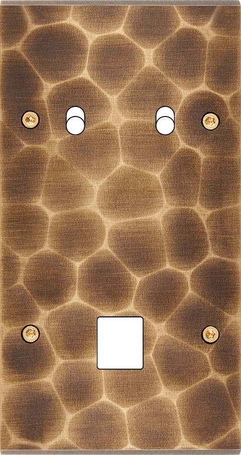 Façade Fascination en laiton massif finition Onde double verticale 2 basculeurs 1 média à vis. Dimensions : 80x151x5mm, deux chanfreins biseautés. Fabriqué en France, dans les ateliers de Steaven Richard.