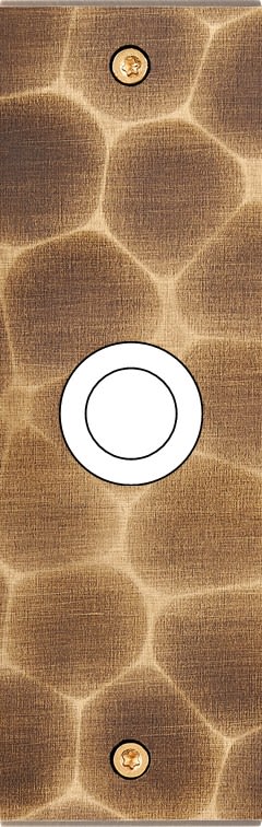 Façade Fascination en laiton massif finition Onde étroite longue 1 gros bouton poussoir PUSH à vis. Dimensions : 126x80x5mm, deux chanfreins biseautés. Fabriqué en France, dans les ateliers de Steaven Richard.