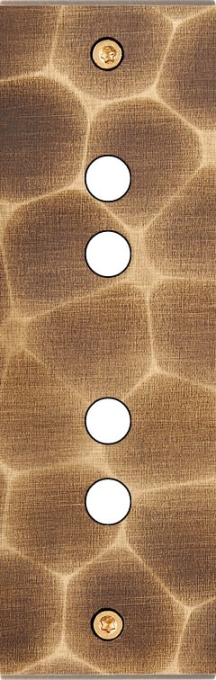 Façade Fascination en laiton massif finition Onde étroite longue 4 boutons poussoir PUSH à vis. Dimensions : 126x80x5mm, deux chanfreins biseautés. Fabriqué en France, dans les ateliers de Steaven Richard.