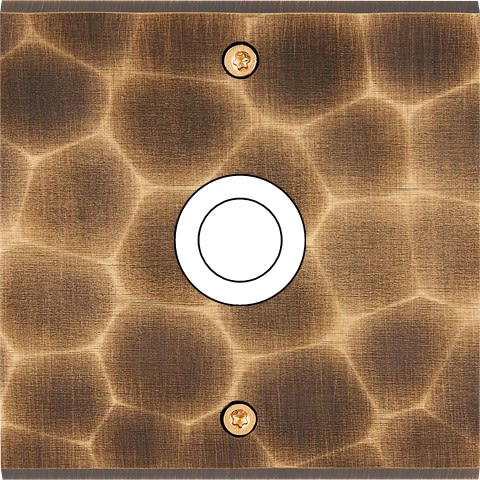 Façade Fascination en laiton massif finition Onde simple 1 gros bouton poussoir PUSH à vis. Dimensions : 80x80x5mm, deux chanfreins biseautés. Fabriqué en France, dans les ateliers de Steaven Richard.