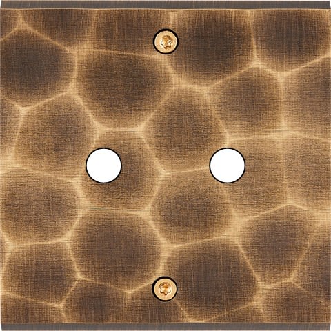 Façade Fascination en laiton massif finition Onde simple 2 boutons poussoir PUSH à vis. Dimensions : 80x80x5mm, deux chanfreins biseautés. Fabriqué en France, dans les ateliers de Steaven Richard.